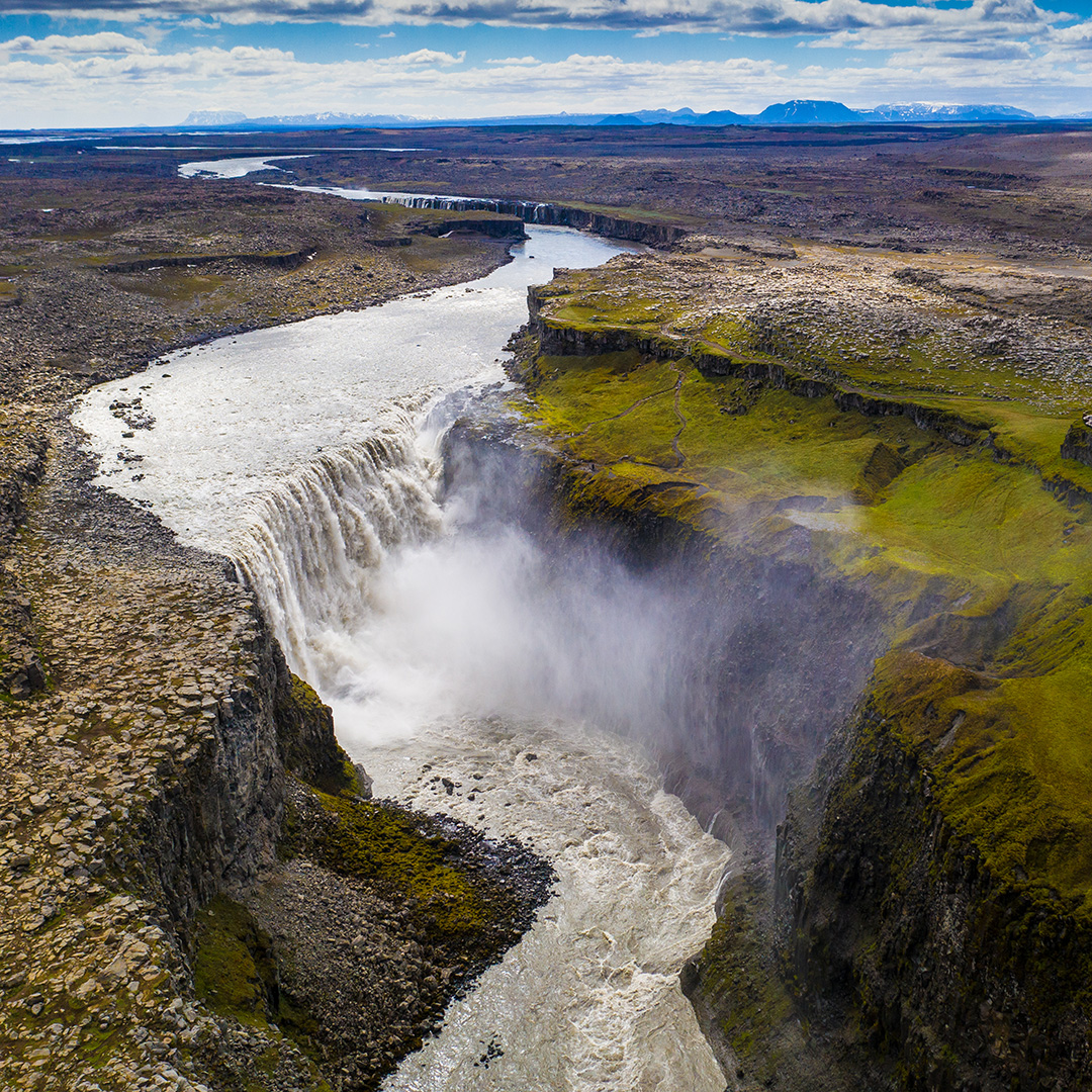 Vandaag reis je naar het noordelijke deel van Vatnajökull National Park en bezoek je de Dettifoss waterval. Rijd via het Tjörnes-schiereiland naar Húsavík, bekend om walvisexcursies.