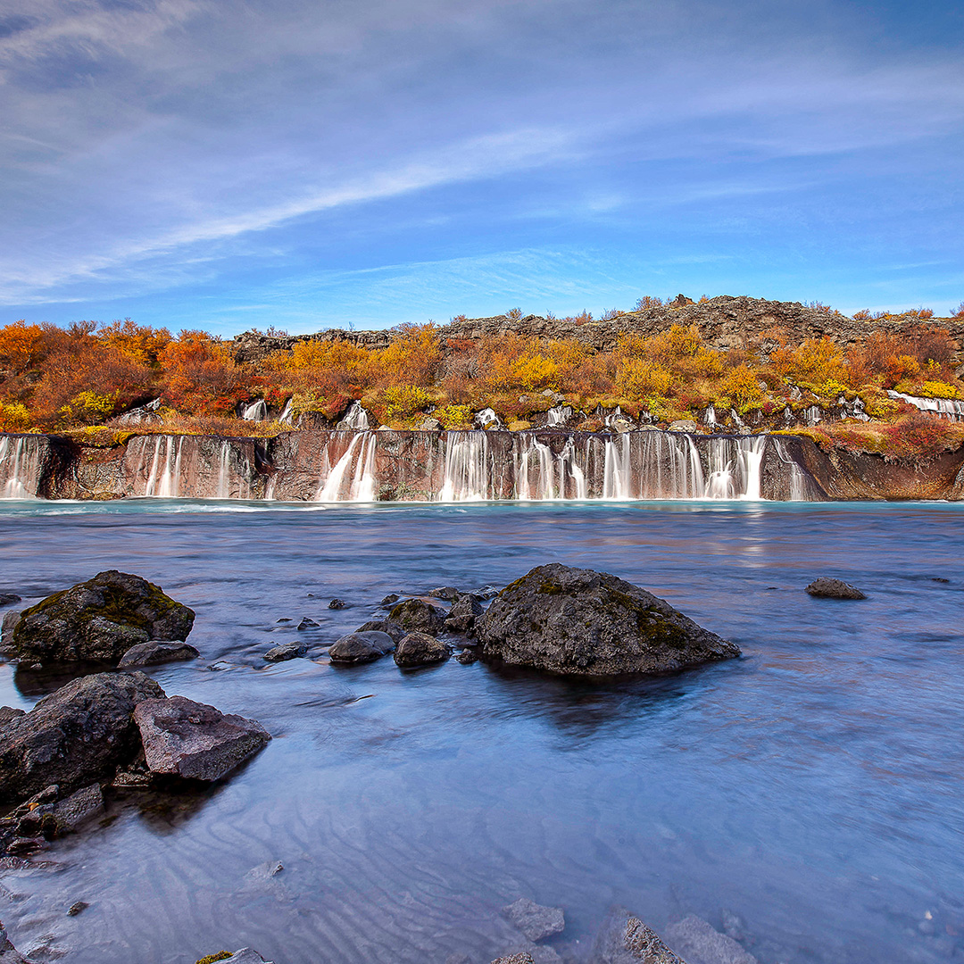 Rijd door het veelzijdige Borgarfjörður met bezienswaardigheden als Deildartunguhver, Hraunfossar en Barnafoss. Optioneel bezoek aan de ijsgrot of canyon baths in Húsafell. Rijd via Hvalfjörður naar Reykjavík.