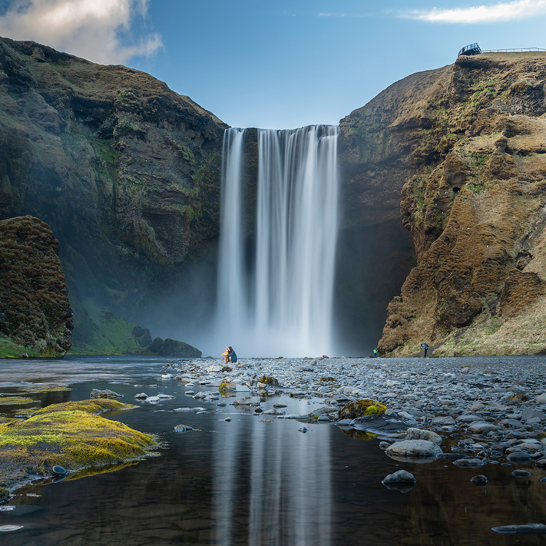 Rijd langs de spectaculaire zuidkust en bekijk hoogtepunten zoals de Seljalandsfoss en Skógafoss watervallen, Mýrdalsjökull gletsjer, en het zwarte zandstrand van Reynisfjara. Via Eldhraun lavaveld naar Kirkjubæjarklaustur.