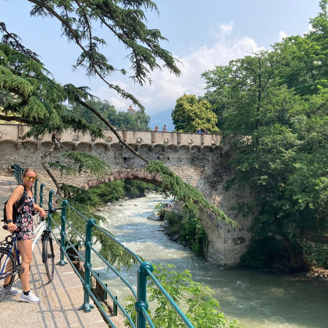 Je fietst via Merano en Nals naar de samenvloeiing van de Etsch en de Eisack. Over mooie fietspaden bereik je de stad van de arcades, Bolzano.