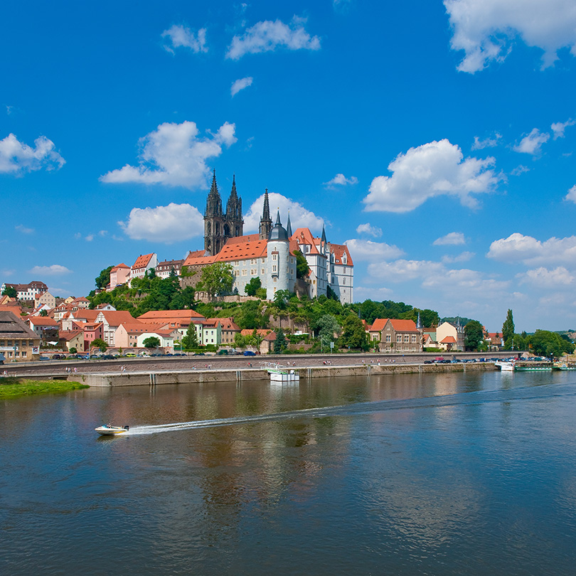 De Elbe voert je door een romantisch landschap vol wijngaarden en sfeervolle dorpjes. Maak een tussenstop in Radebeul, de stad van schrijver Karl May. De Elberadweg leidt je vervolgens naar de wereldberoemde stad Meißen, bekend om zijn porselein. De schilderachtige straatjes van het historisch gegroeide stadscentrum zijn ideaal om te wandelen en winkelen. Wandel door de oude straatjes en bezoek de indrukwekkende Albrechtsburg en de Meißener porseleinfabriek.