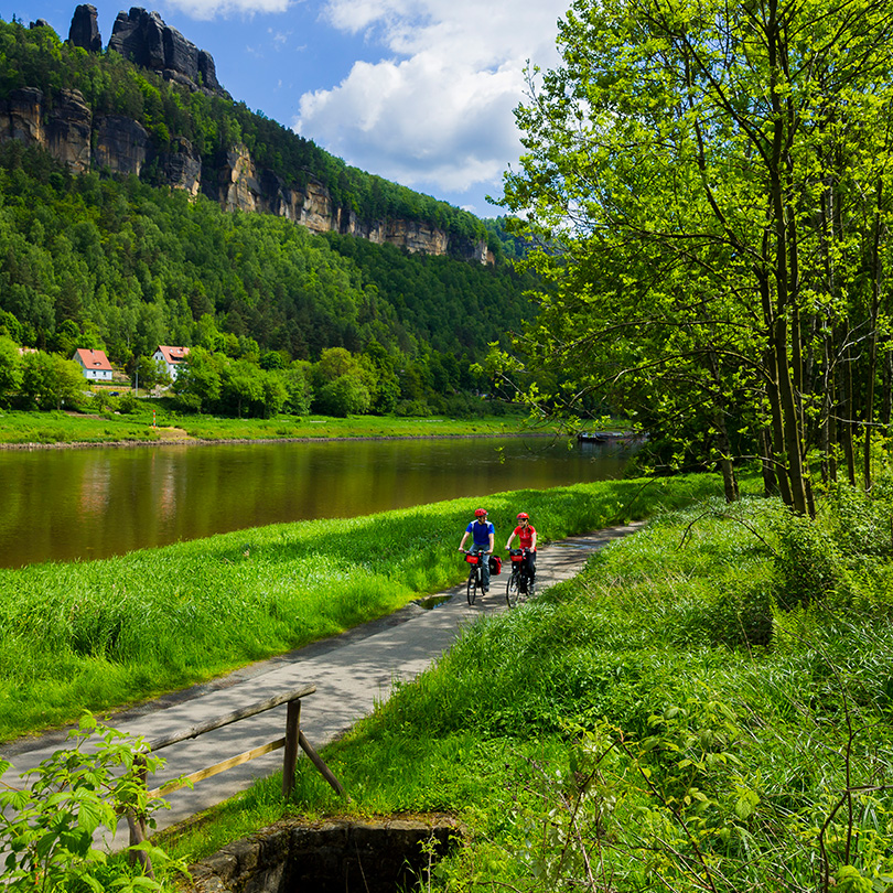 Direct langs de Elbe voert de Elberadweg naar het schitterende kasteel Pillnitz met zijn indrukwekkende tuin. Vervolgens gaat de fietstocht opwaarts naar de ruige zandstenen kliffen van het Elbsandsteingebirge. Een uniek landschap van rotsen, tafelbergen, vlaktes en kloven. Beklim de beroemde Bastei-rotsen voor een spectaculair uitzicht over de rivier. Terug van Bad Schandau naar Dresden fiets je stroomafwaarts of neem je de S-Bahn (optioneel).