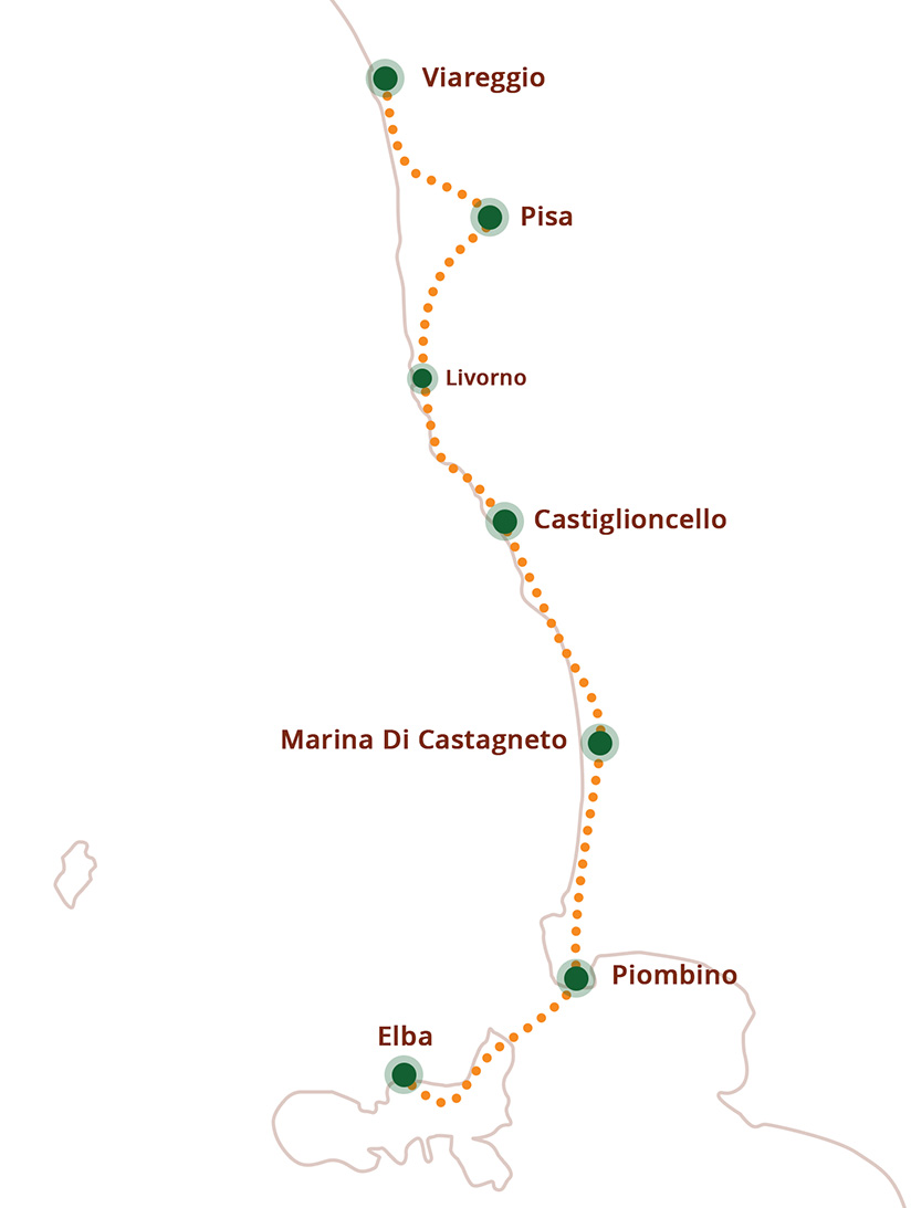 Ervaar de magie van Toscane tijdens een 7-daagse individuele fietsvakantie langs de adembenemende kustlijn. Weinig landen laten reis-harten zo snel sneller kloppen als ‘Bella Italia’ en weinig regio’s staan zo sterk voor het Italiaanse levensgevoel als Toscane. Wijn, olijven en zee zijn slechts enkele steekwoorden die deze reis tot iets heel bijzonders maken. Fiets langs schilderachtige wijngaarden, geurige pijnboombossen en pittoreske kustdorpen. Daar komen culturele highlights bij, zoals de scheve toren van Pisa of ‘Venezia Nova’ in de historische havenstad Livorno. De ‘Grande Finale’ van de 7-daagse tour langs de Toscaanse kust is een dagtocht naar het idyllische eiland Elba, waar al tijdens de veerboottocht adembenemende landschappen te zien zijn.