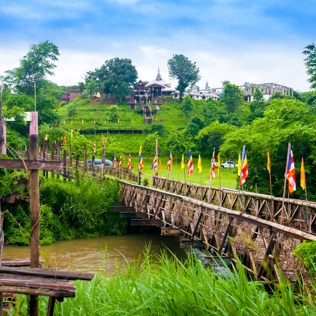 Na de stadse energie van Chiang Mai trek je dieper de natuur in naar het rustige bergdorpje Pai, dat bekend staat om zijn ontspannen sfeer en omringende schoonheid. Pai is de perfecte plek om tot rust te komen, met zijn schilderachtige landschappen, groene valleien en het aangename klimaat. Tijdens je verblijf in Pai maak je diverse uitstapjes, waaronder een bezoek aan watervallen waar je een verfrissende duik kunt nemen, en hot springs waarin je heerlijk kunt ontspannen. Daarnaast bezoek je lokale markten waar je ambachten van de bergstammen kunt bewonderen en bijzondere souvenirs kunt kopen. Een scenic wandeling door de bergachtige omgeving biedt uitzicht op spectaculaire panorama’s en geeft je een gevoel van verbondenheid met de natuur.