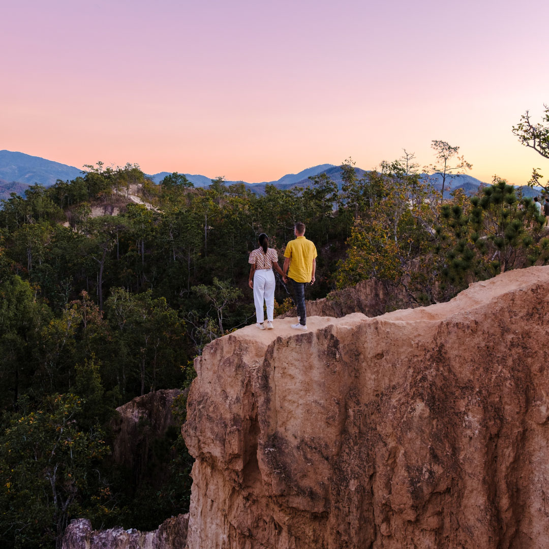 Vanuit Pai reis je verder naar het afgelegen Mae Hong Son, een provincie die nog grotendeels onaangetast is door het toerisme en een bijzondere charme heeft dankzij zijn ligging nabij de grens met Myanmar. Deze regio heeft daardoor een unieke culturele sfeer, waarin invloeden van het buurland Myanmar duidelijk zichtbaar zijn. In Mae Hong Son word je ondergedompeld in een rustige en authentieke omgeving, waar tempels en lokale markten nog de sfeer van vroeger uitstralen. Het is een perfecte bestemming voor reizigers die op zoek zijn naar een ongerepte en mystieke kant van Thailand.