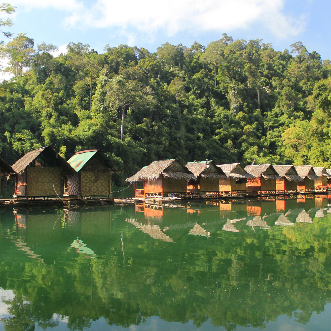 Khao Sok National Park is een van de oudste regenwouden ter wereld en biedt een prachtige omgeving van dichte bossen, indrukwekkende kalksteenrotsen en het serene Cheow Lan Meer. Tijdens je verblijf in dit park maak je een unieke tour over het Cheow Lan Meer per kayak of bamboevlot. Hier kun je de indrukwekkende natuur van dichtbij ervaren en de geluiden van het regenwoud in je opnemen. De Ratchaprabha Dam heeft het mooiste uitzicht over het meer. Met een beetje geluk zie je apen in de bomen slingeren of andere wilde dieren langs de oevers. Je overnacht in een hut aan het meer, waardoor je het regenwoud en de stilte van de natuur van heel dichtbij beleeft. Khao Sok is een plek waar je tot rust komt en je de schoonheid van de ongerepte natuur echt ervaart.