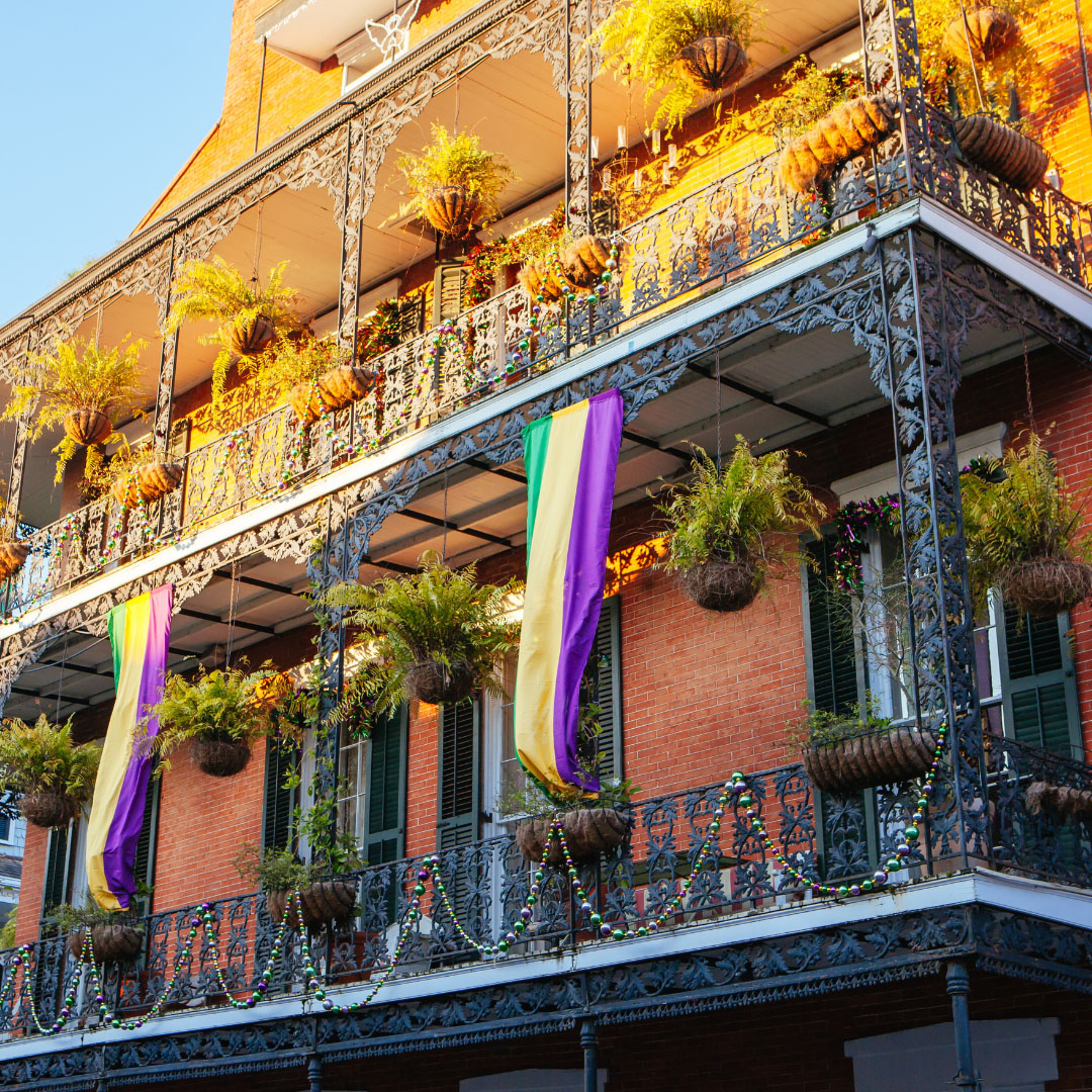 Ontdek de kleurrijke sfeer in Bourbon Street of bezoek het Louisiana State Museum voor een glimp van de rijke geschiedenis.